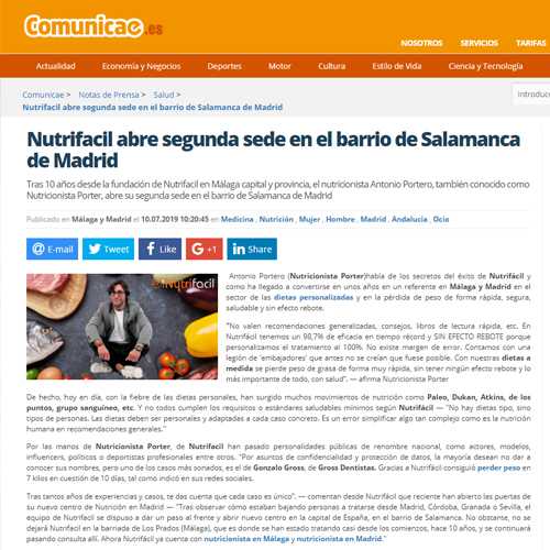 Nutrifacil abre segunda sede en el barrio de Salamanca de Madrid.
