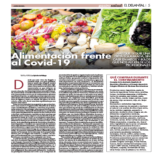 Alimentación frente al Covid-19. Hay que seguir una dieta equilibrada, sin caer en mitos y bulos que los alejen de los profesionales