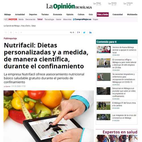 Nutrifacil: Dietas personalizadas y a medida, de manera científica, durante el confinamiento.